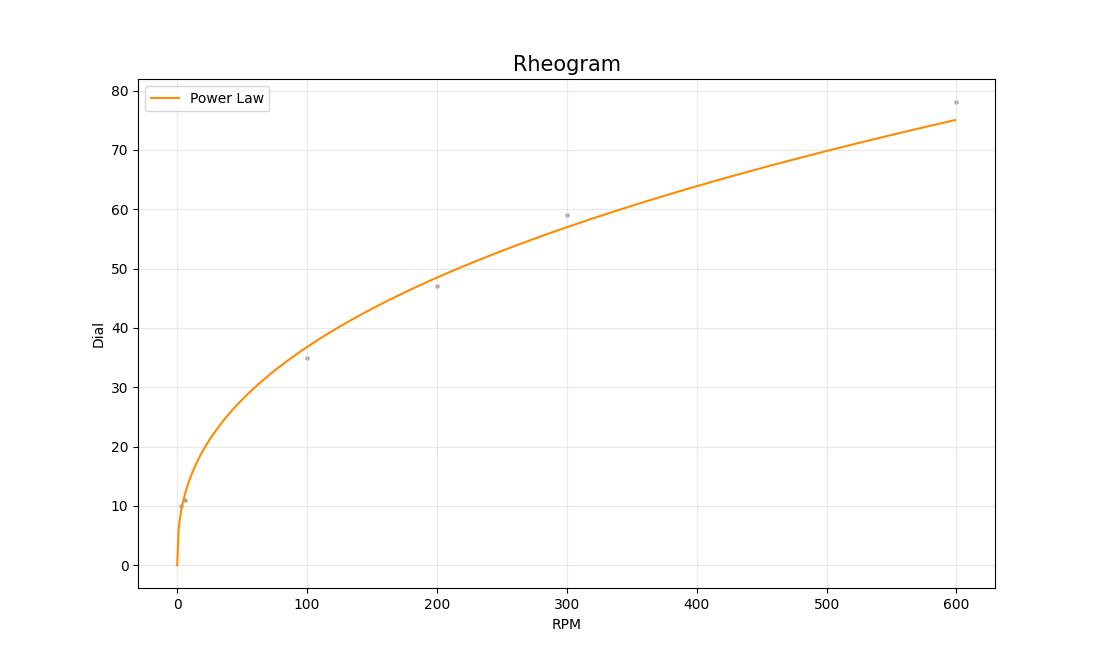 For the example above the best fit rheology model was Power Law and the parameters are: