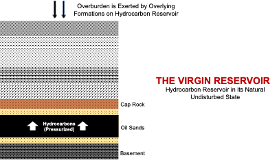 in its Natural State. Overburden from the overlying formations pressurizes the hydrocarbons trapped in the pore spaces of the reservoir rock. The cap rock that overlays the reservoir rock acts as a natural seal and holds the accumulation in place.