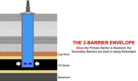 Figure 4: After the primary barrier has been re-established, the secondary barriers return to their redundant state until required again. Well operations must remain suspended until the primary barrier is re-established and not conducted under only the secondary barrier envelope.